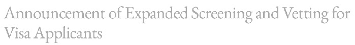 Announcement of Expanded Screening and Vetting for Visa Applicants