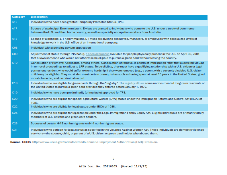 Cheat Sheet: Categories Previously Eligible for Automatic Extensions