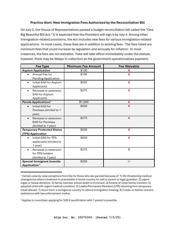 Practice Alert: New Immigration Fees Authorized by the Reconciliation Bill